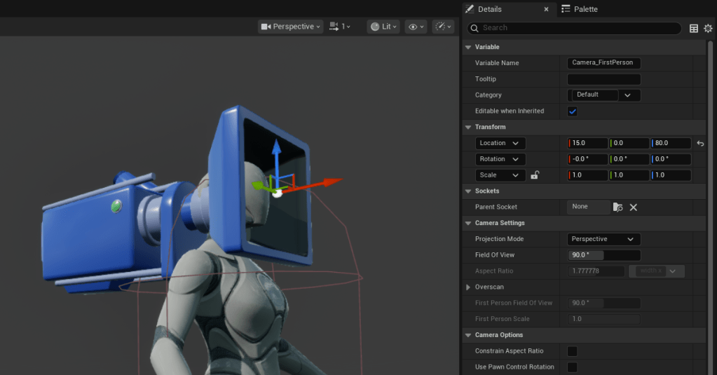 Let’s name this camera “Camera_FirstPerson” so that we can easily tell it apart from the additional camera we’re adding later.