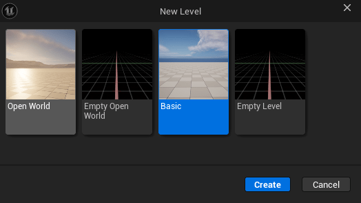 Click File -> New Level and choose “Basic”
