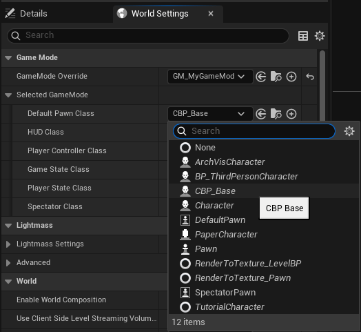 Go ahead and assign CBP_Base to the “Default Pawn Class” of your game mode.