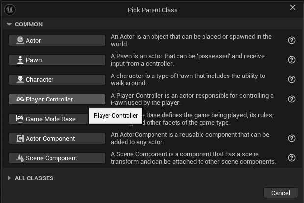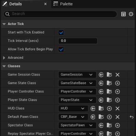 Before we move on to the AC, let’s tell our GameMode to use this fancy new PlayerController we’re building… just so we don’t forget. You remember how to do that, right? Scroll up a bit if you need a refresher.