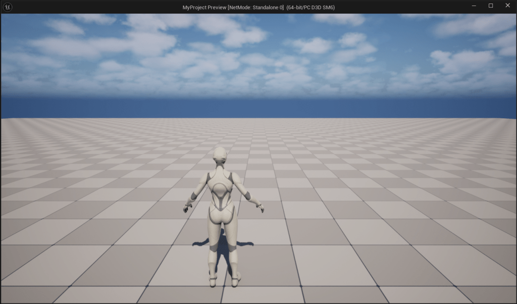 If your Viewport is open, you should see your skeletal mesh “snap” into an idle animation loop. Play in editor and give it a try!