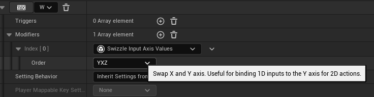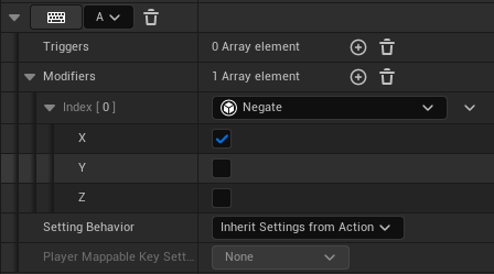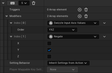 Play in the editor and see how it feels! If you don’t like the vertical mouse look, you can open your IMC_ControlBindings file and add a “Negate Y” modifier to your IA_Look binding, which will flip the vertical (aka Y) axis. Like so…