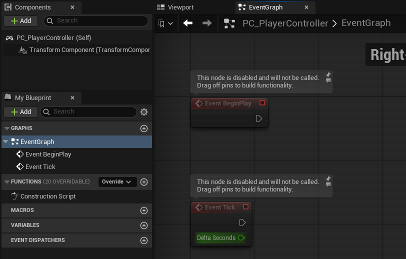 And that’s it. We’re done with our Player Controller. But now that we are sending inputs to our actor component, we still need to make the inputs do things with our character. So let’s work on making our character move. Finally!