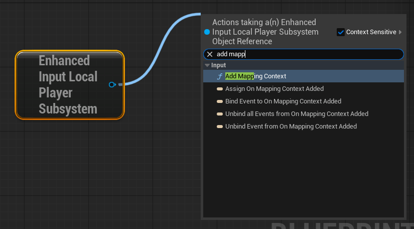 Drag off the blue pin and search for “Add Mapping Context”