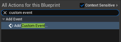Under the EventGraph, right-click anywhere on the grid and search for “Custom Event” then add it.