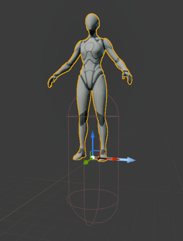 This will attach the selected skeletal mesh (SKM) to your Mesh Component. But it’s not quite right. By default, it’s turned 90 degrees the wrong way and is floating in the middle of the capsule instead of standing in the bottom. This is easy to fix!