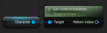 Pull off from the Character variables pin and add a “Get Control Rotation” node. This node gets the vectors for the direction the character is currently facing (remember that arrow widget?).