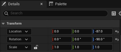 - Set Location Z axis (blue) to -87.0 to lower it by 87 cm.