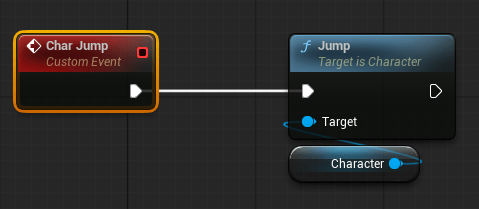 Next, drag off the pin and select the “Char Movement” event we created earlier.