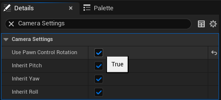 Next, select your SpringArm and search for “Camera Settings” and make sure the option “Use Pawn Control Rotation” is checked.