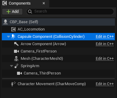 Finally, let’s add this actor component to our character, CBP_Base, before we forget to make that connection!